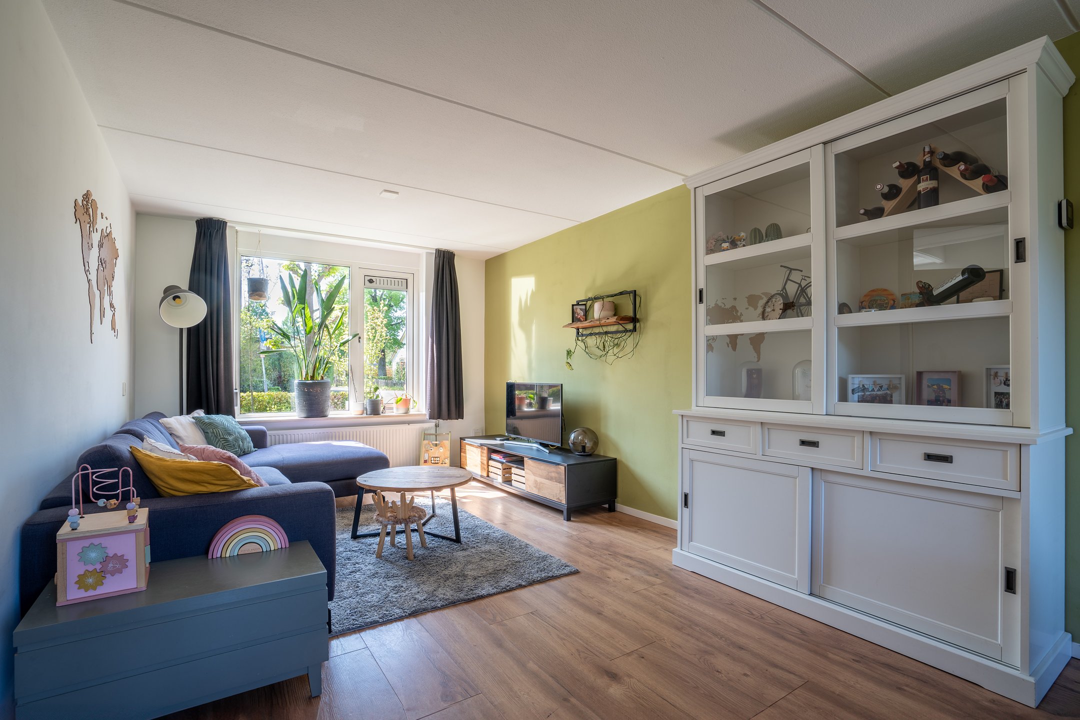 Indeling: De ruime entree is een prettige binnenkomer met het zijraam dat voor extra daglicht zorgt. Het toilet is vernieuwd en de woonkamer heeft een lichte laminaatvloer. De open keuken met een nette inrichting sluit mooi aan op de woonkamer en is o.a. voorzien van een gaskookplaat, koelkast en oven. De vaatwasser en wasmachine zijn praktisch opgesteld in de aansluitende bijkeuken met achteringang. Deze bijkeuken geeft toegang tot de extra bergruimte. Daarnaast is er een lichte werkkamer, perfect als thuiswerkplek of hobbyruimte.