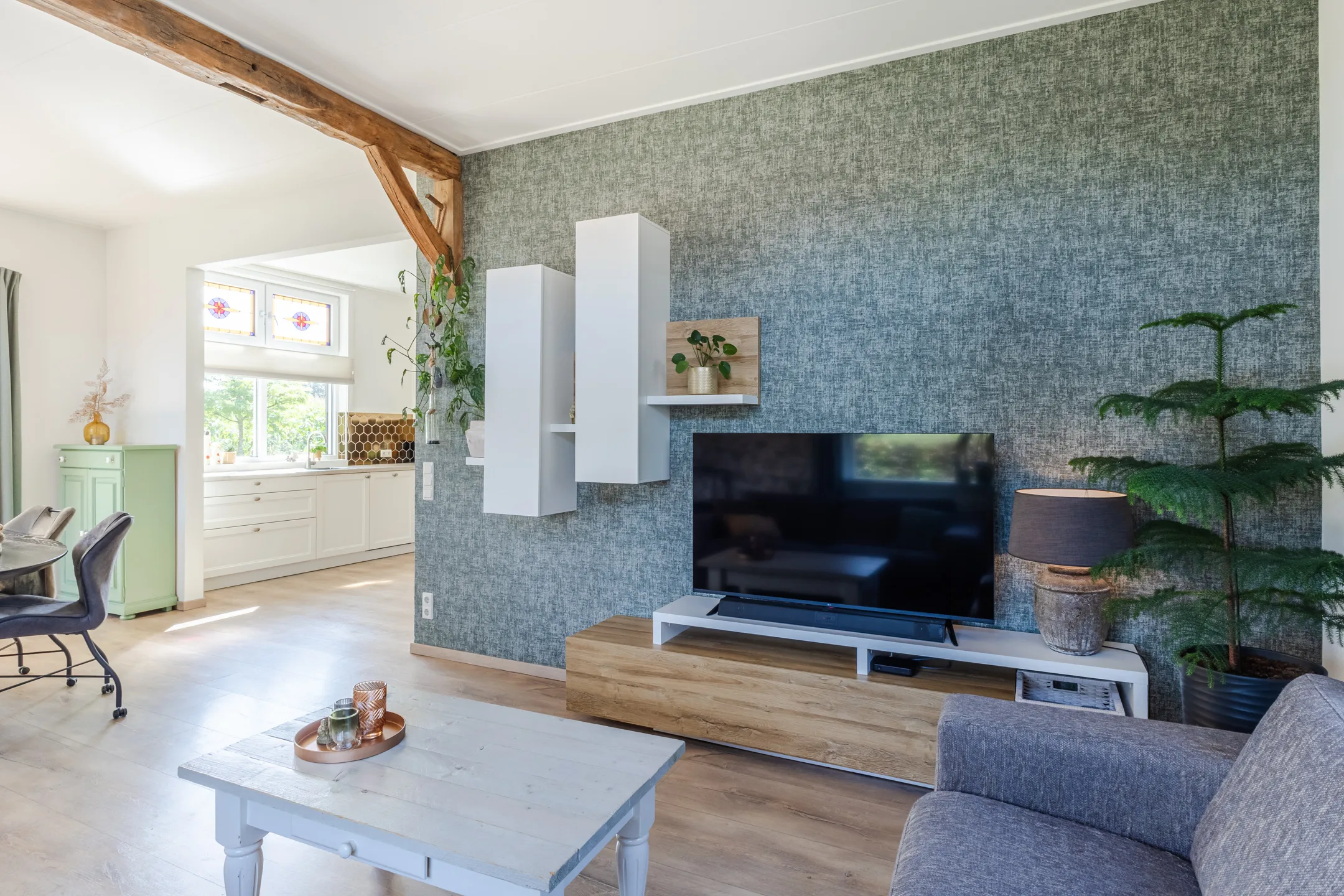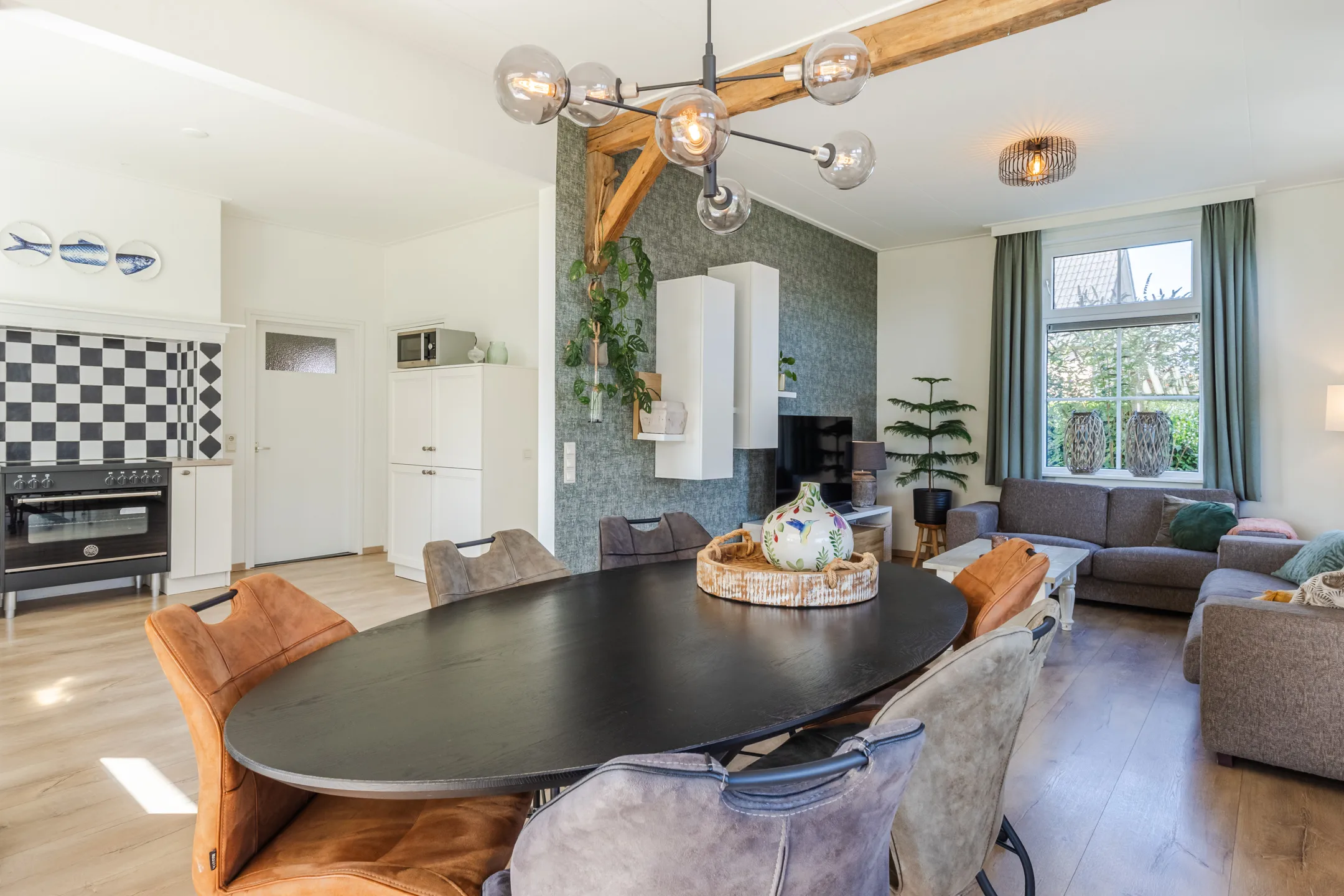 Je stapt binnen via een sfeervolle hal met authentieke tegelvloer en extra brede trapopgang. De woonkamer is licht met openslaande deuren naar het terras en staat in open verbinding met de keuken welke is gemoderniseerd en voorzien van een fornuis met inductiekookplaat, oven, vaatwasser en koelkast. De badkamer is luxe en eigentijds uitgevoerd met een wastafelmeubel, ligbad en een royale inloopdouche. In de bijkeuken vind je het moderne toilet, de aansluiting voor wasmachine en de opstelling van de CV-ketel. Zowel de woonkamer, keuken, het halletje als de badkamer zijn voorzien van vloerverwarming. Op de verdieping zijn drie slaapkamers, waarvan er 2 met elkaar verbonden zijn – ideaal als thuiswerkplek of hobbyruimte. Een vliering biedt extra opbergruimte.