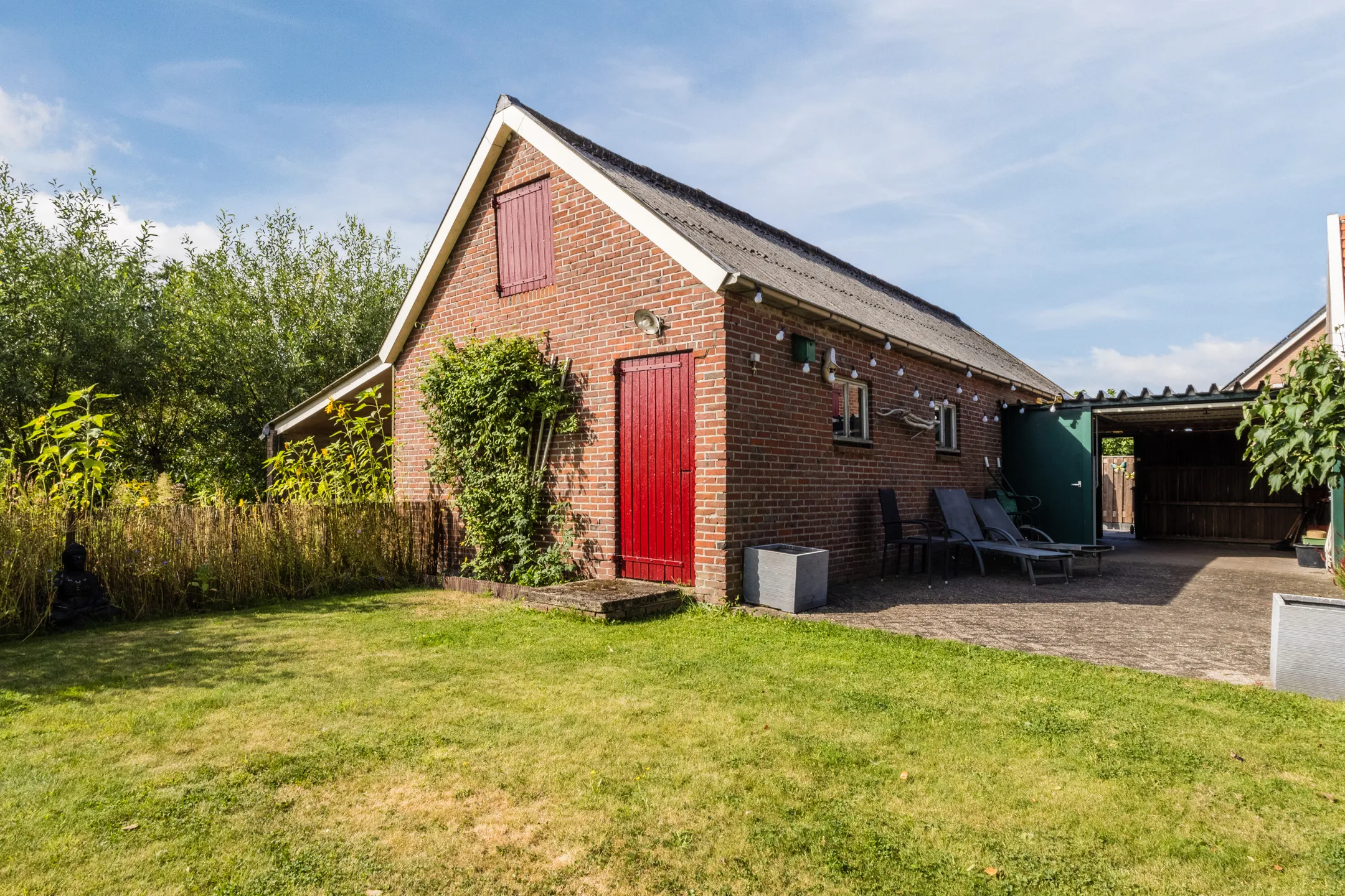 Rondom de woning ligt een verzorgde tuin met meerdere terrassen, zodat je op elk moment van de dag kunt kiezen voor zon of schaduw. De grote vrijstaande berging van 54 m² is een droom voor de klusser, verzamelaar of hobbyist. Daarnaast is er nog een extra berging en een carport met achtergelegen opslagruimte. Kortom: ruimte genoeg!