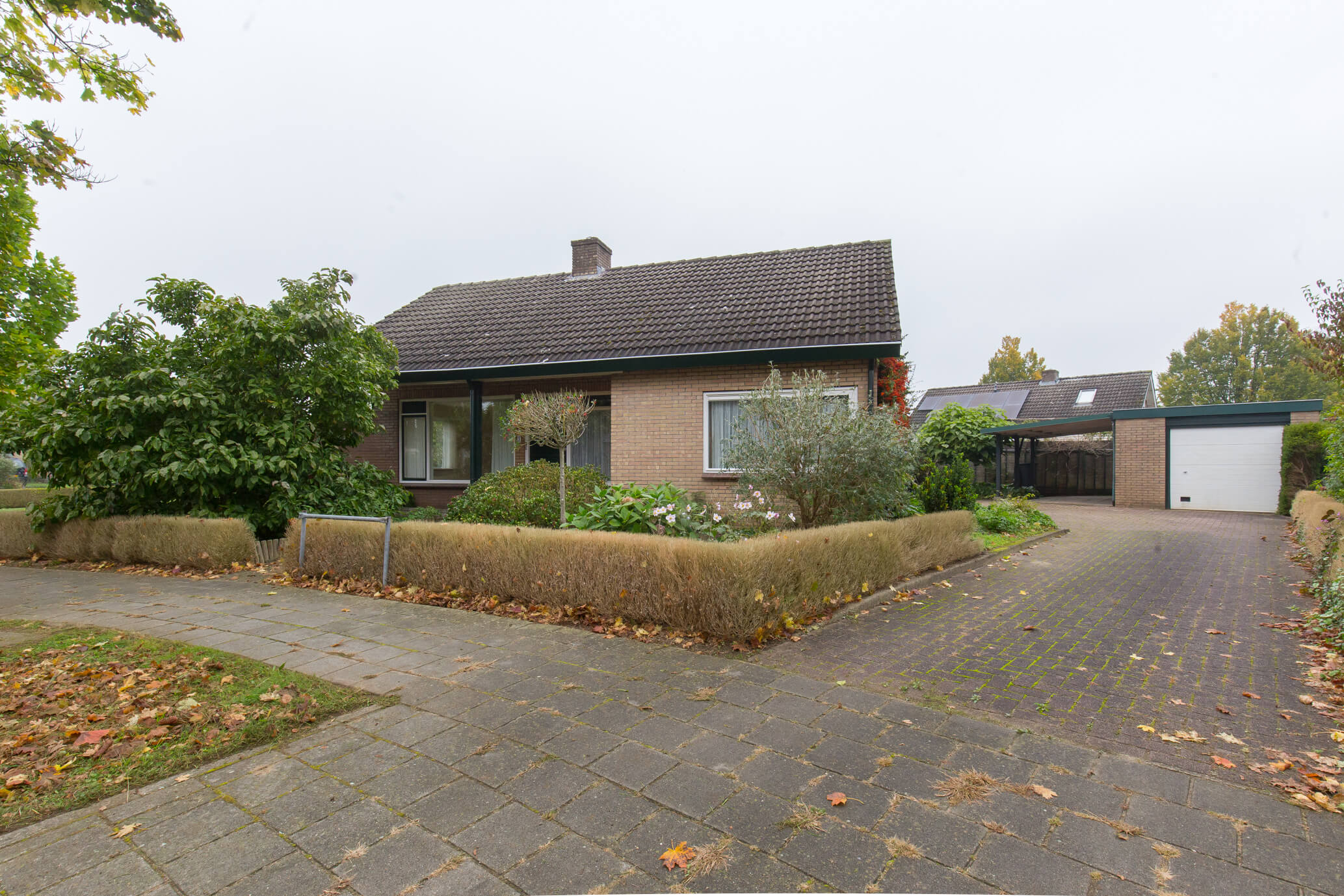 Vrijstaande semi-bungalow met vrijstaande garage en o.a. slaap- en badkamer op de begane grond.